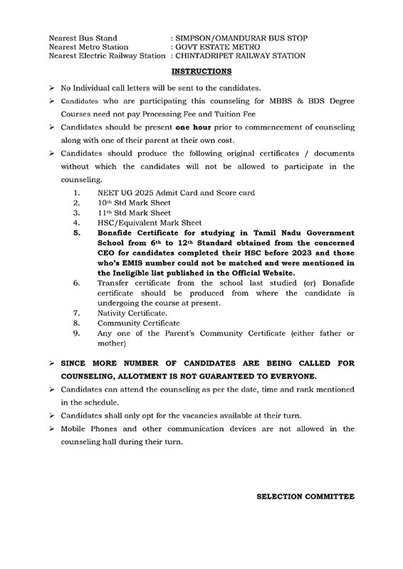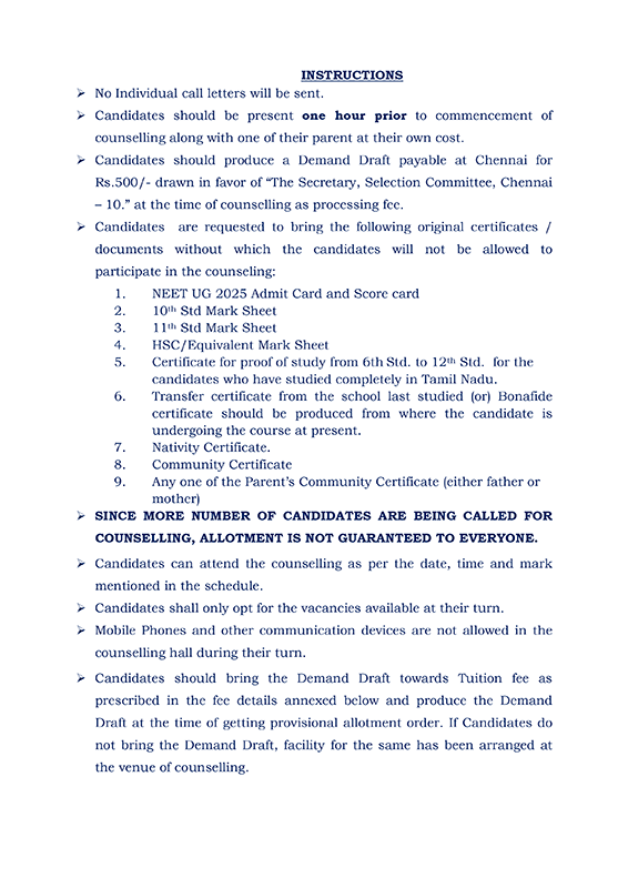 MBBS 2025 batch admission- General instructions