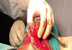 42/M Patient came with H/o self inflicted, cut throat Diagnosed -Self inflicted cut injury /zone-1 and 2 neck injury . Presented with severe bleeding, hypovolumic shock .Airway secured and fluids started . Pt was shifted to emergency OT and resuscitation started and stabilized by our anesthesia team. Patient underwent Emergency exploration of neck and bleeding IJV was ligated and ryles tube inserted .There were two penetrating wounds in neck , one in zone 1 which was exposed and Tracheostomy done. In zone 2, there was complete transection of thyroid cartilage and epiglottis, completely separated and tear went upto pyriform mucosa. Cartilage repair and mucosa repair done . It is first of its kind , cut throat injury with vessel bleed and pt revived in almost arrested stage and successfully surgical repair done .