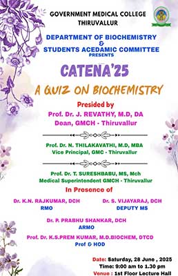 | 1 | CATENA 25 | 28-06-2025 | QUIZ COMPETITION FOR I MBBS STUDENTS |