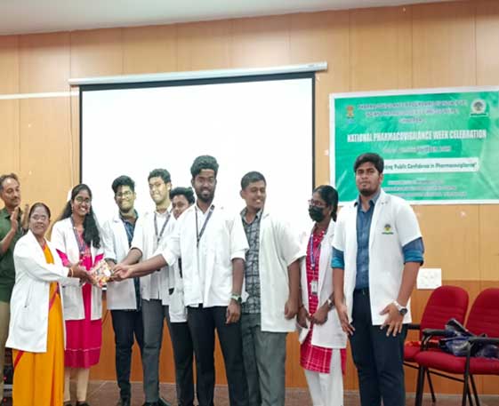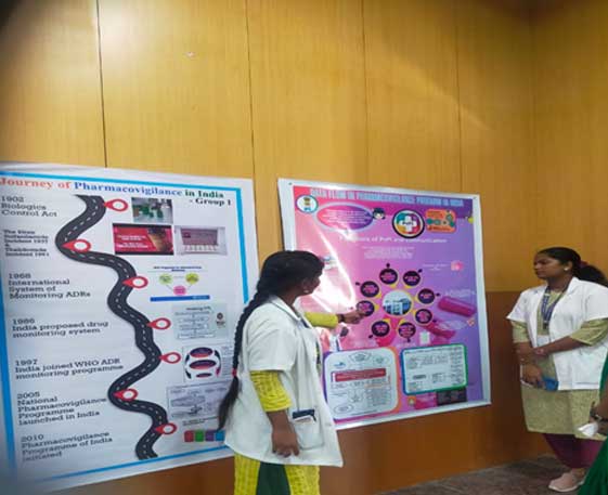 | 6. | National Pharmacovigilance week celebration | 17th to 23rd september 2023 | The Pharmacovigilance week was celebrated with awareness program to out patients in attending Government hospital,Thiruvallur and Avadi Urban Primary Health Centre. A poster competition in pharmacovigilance was conducted for the students and prizes were distributed. An orientation program above pharmacovigilance was conducted for the CRMI and DRP PG's. |